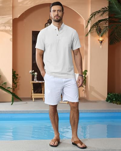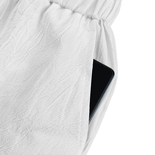 NANAMEEI Men's Cotton Linen Shorts Mens Elastic Waist Shorts with Pockets Mens Drawstring Shorts