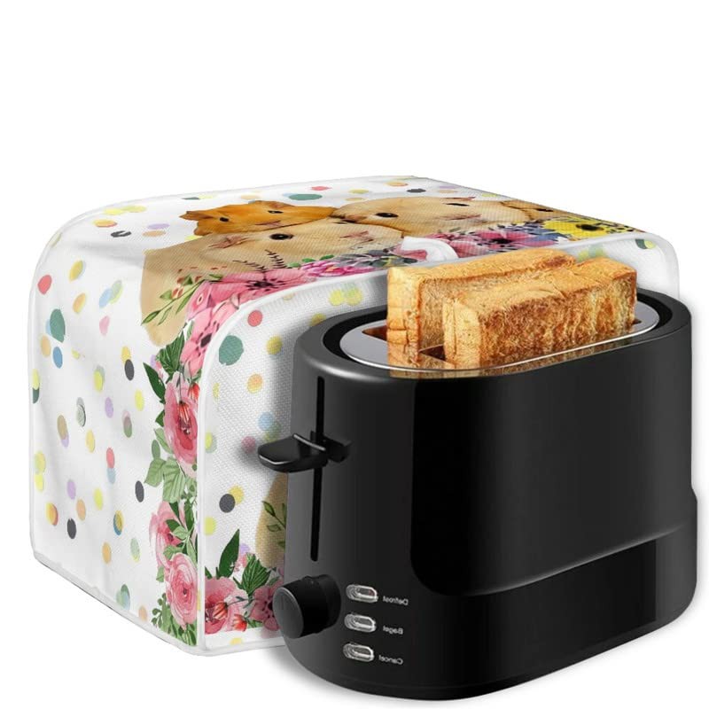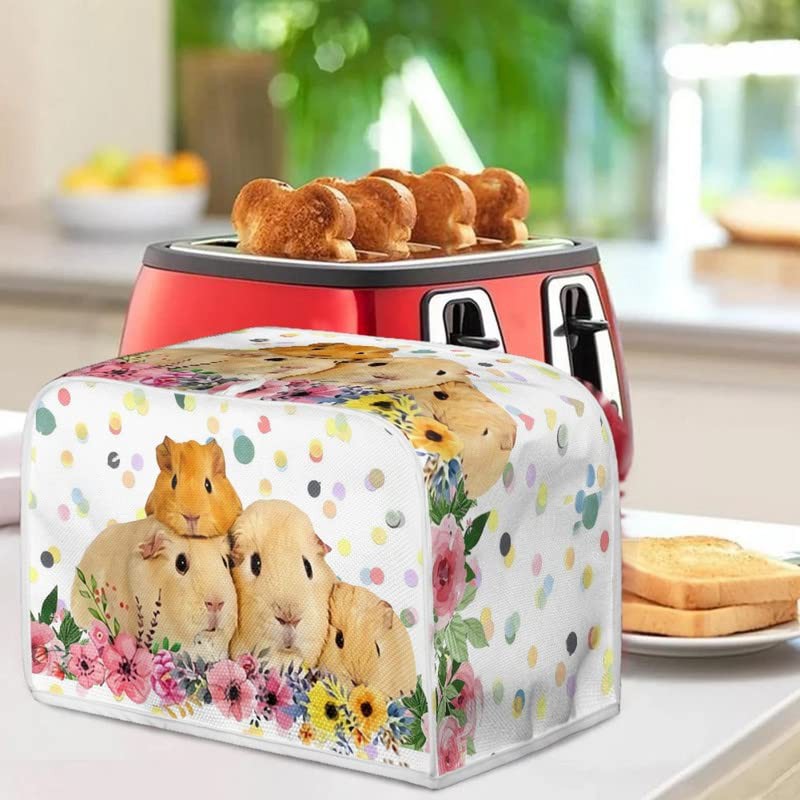Kuiaobaty Guinea Pigs Family Print Toaster Dust Cover 2 Slice, Cute Animals Floral Linen-like Cover for Small Kitchen Appliance