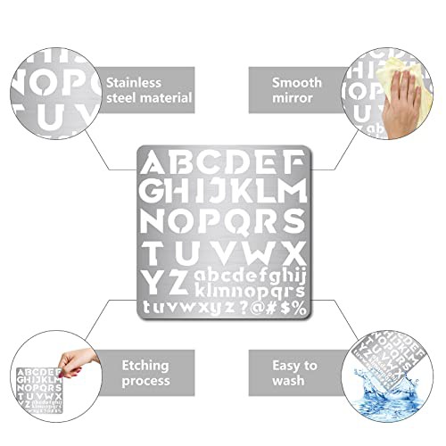 GORGECRAFT 6.3 Inch Metal Letter Stencil Stainless Steel Lettering Alphabet Symbol Painting Template Journal Tool for Painting, Wood Burning, Pyrography and Engraving