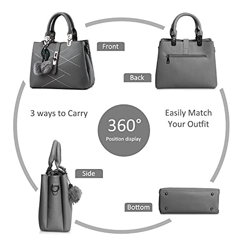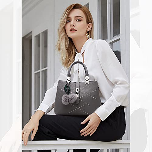 NICOLE & DORIS 2024 New Handbags for women Fashion Ladies Handbags & Shoulder Bags Designer Top Handle Bag with Pompom Grey
