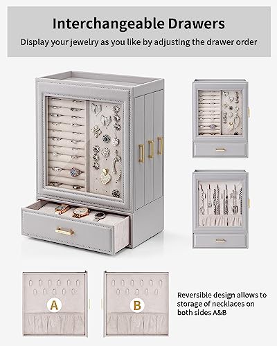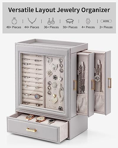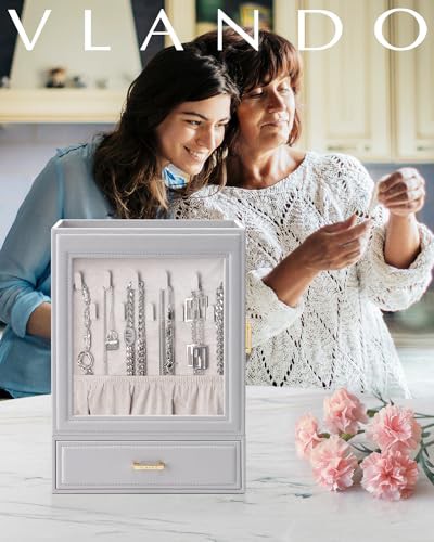 Vlando Large Jewellery Organiser with Glass Window Jewellery Box for Necklaces Earrings Rings Bracelets Watches Jewellery Storage Case Christmas for Women Girls