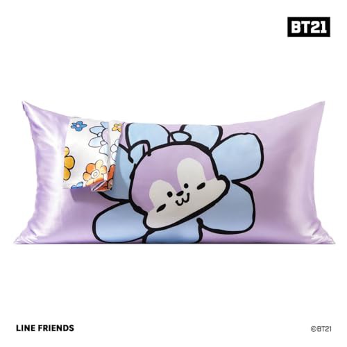 Kitsch x BT21 Satin Pillowcase with Zipper for Hair and Skin, Softer Than Silk Pillow Cases King, Cooling Pillow Covers, Machine Washable, Wrinkle-Free, Smooth Satin Pillow Cases King Size 19x36, Mang