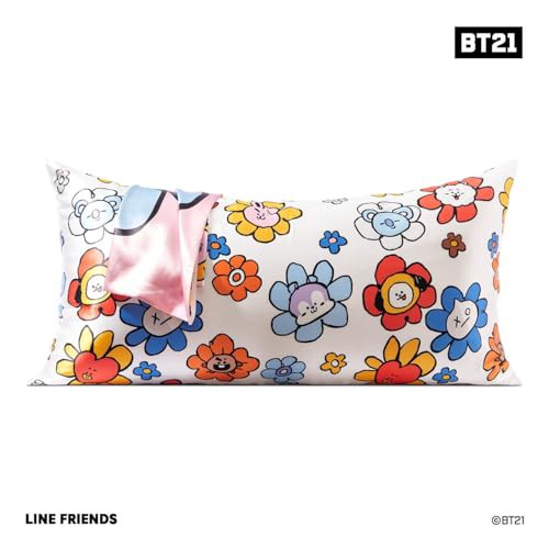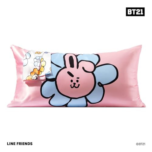 Kitsch x BT21 Satin Pillowcase with Zipper for Hair & Skin, Softer Than Silk Pillow Cases King, Cooling Pillow Covers, Machine Washable, Wrinkle-Free, Smooth Satin Pillow Cases King Size 19x36, Cooky
