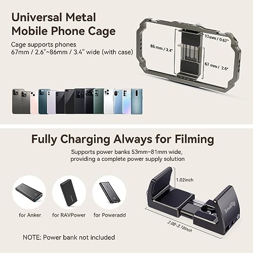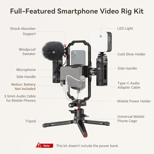 SMALLRIG Universal Mobile Phone Video Rig Cage Kit for iPhone for Samsung for HUAWEI, Smartphones Rig with Tripod/Microphone/LED Light/Side Handle, etc., for Vlogging & Live Streaming - 3384B