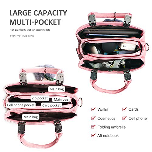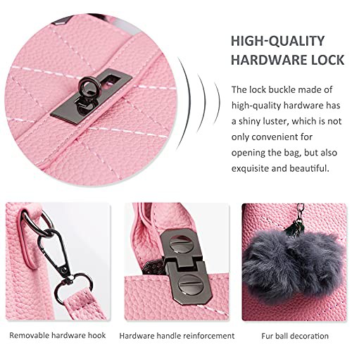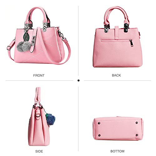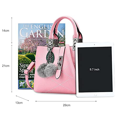 NICOLE & DORIS 2024 New Handbags for Women Fashion Ladies Handbags & Shoulder Bags Designer Top Handle Bag with Pompom Light Pink