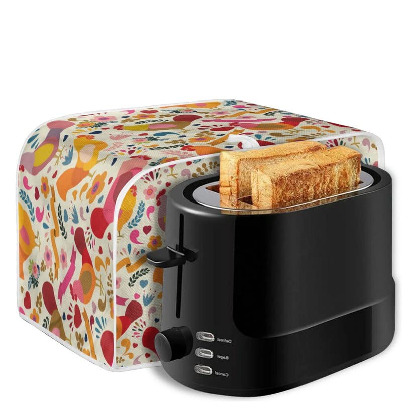 Kuiaobaty Chicken Floral Pattern Toaster Cover 2 Slice, Farm Roosters Print Dust Proof Case for Bread Machine Kitchen Accessories