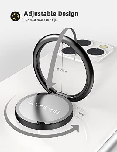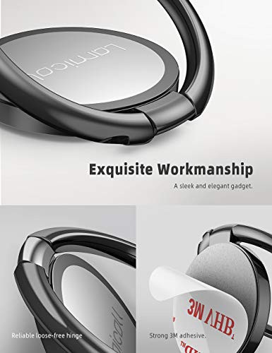 Lamicall Phone Ring Holder, Handy Finger Ring Stand - Universal Grip 360 Adjustable Mobile Phone Loop for iPhone 16 15 14 13 12 11 Pro Max Plus Mini Xs XR X 8 7 6S, Samsung, 4~8" Smartphone - Black