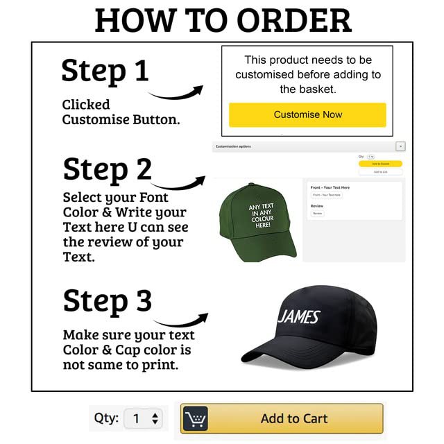 Personalised Baseball Cap | Custom Caps for Men | Perfect for Sports Teams and Outdoor Activities Adjustable Cotton Cap, Adult Unisex Cap Black
