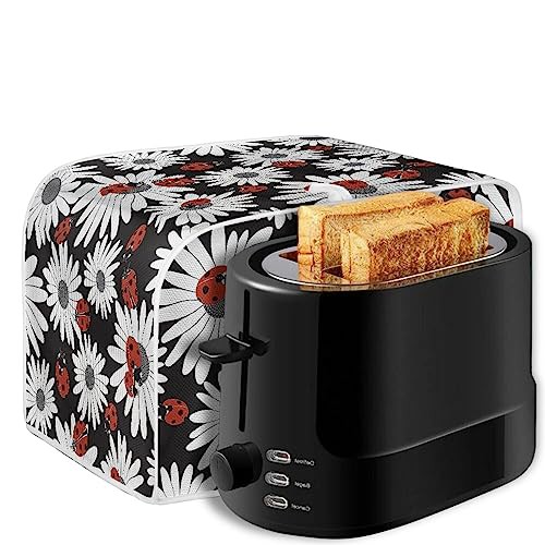 Kuiaobaty Cute Ladybugs Print Two Slice Toaster Cover Size 11.5x8x8Inches, White Daisy Flowers Bread Toaster Oven Cover with Hook
