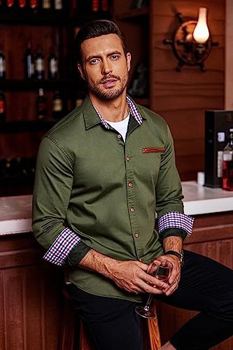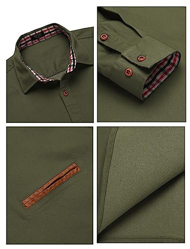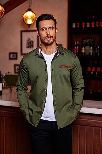 COOFANDY Men's Casual Shirt Long Sleeve Denim Shirt Dress Shirt Work Shirt Plaid Collar Regular Fit