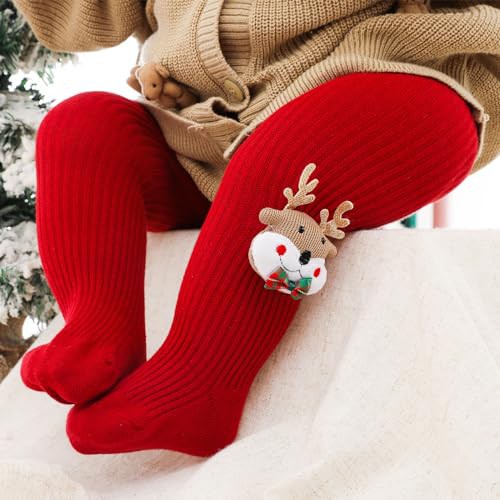 YILEEGOO Baby Toddler Girls Tights Rib Knit Pantyhose With Velvet Bows Chritsmas Valentine's Day Leggings Pants Infant Stockings