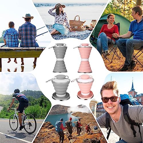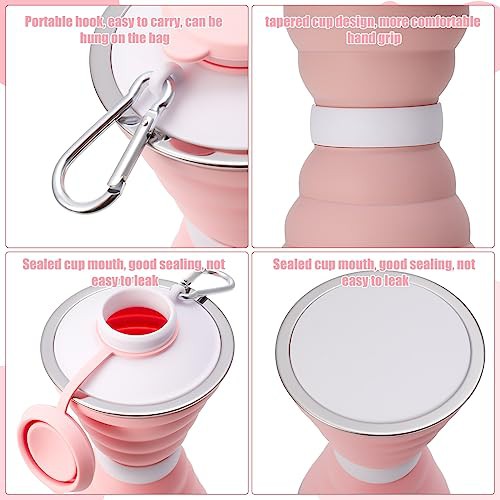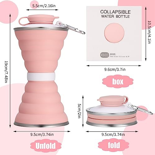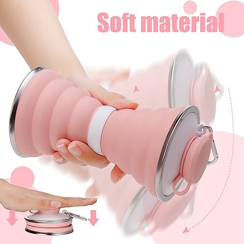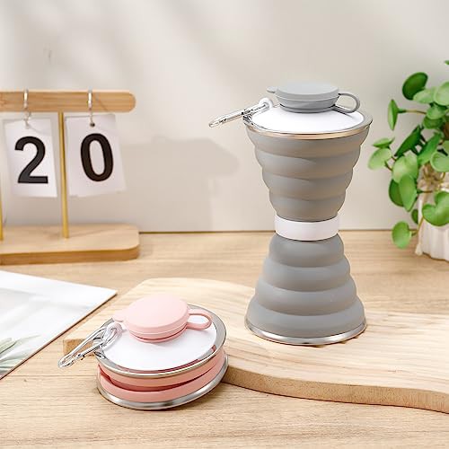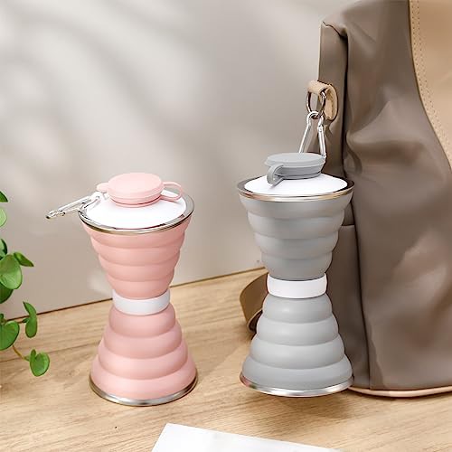 Firtink 2 Pcs Collapsible Water Bottle, 500ml Silicone Portable Travel Water Bottle Leak-Proof Reusable Foldable Cup with Carabiner and Strap for Sports Gym Camping Hiking Cycling Outdoor Activities