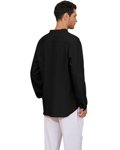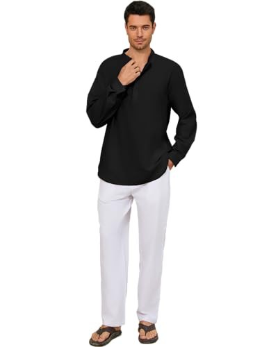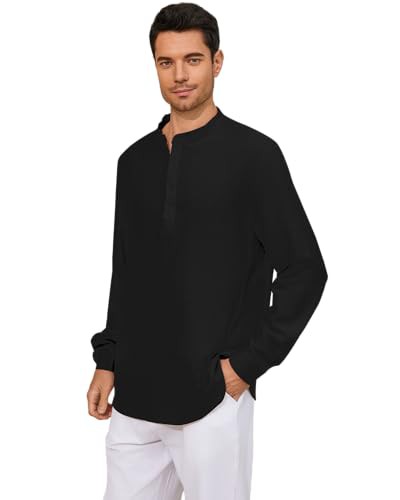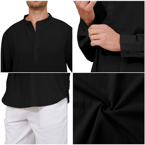 YAOHUOLE Men’s Cotton Linen Shirt Long Sleeve Casual Henley Collarless Grandad Shirts Tops Summer Beach Tops