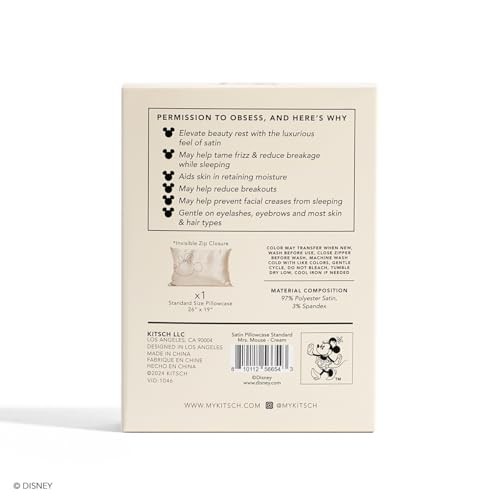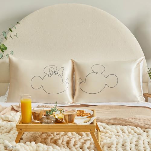 Mickey/Minnie x Kitsch Satin Pillowcase with Zipper - Softer Than Silk Pillow Cases for Hair & Skin Cooling Pillow Cases Covers | Satin Pillow Cases Standard Size