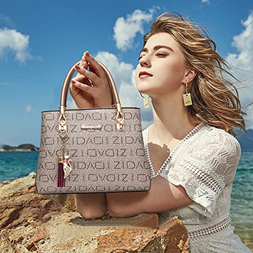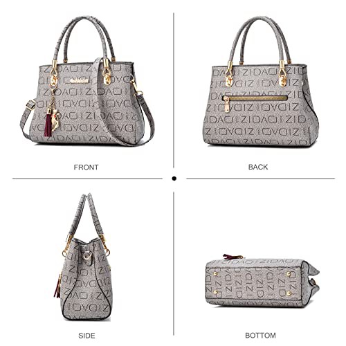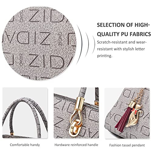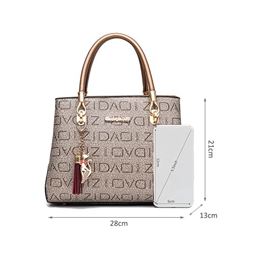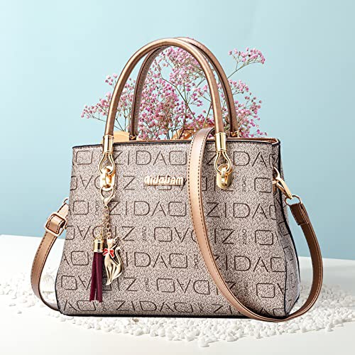 NICOLE & DORIS Fashion Women Handbag with Printing Shoulder Bags Designer Top Handle Bag with Tassel Pendant Tote Bag Medium Size Ladies Work Bag PU Leather Crossbody Bag