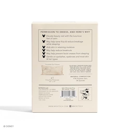 Mickey/Minnie x Kitsch Satin Pillowcase with Zip for Hair and Skin, Soft Than Silk, Cooling Satin Pillowcase, Pillow Case in King Size 48 x 91 cm, Mrs. Mouse