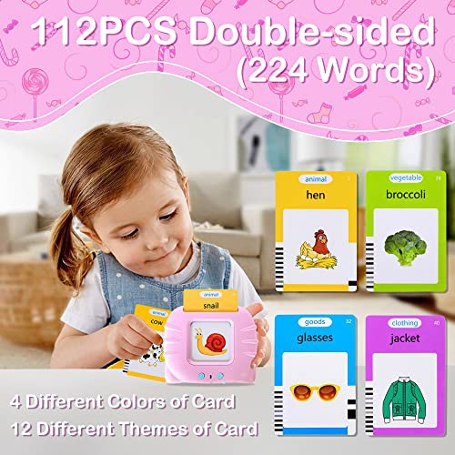 Talking Flash Cards Early Educational Toys for 3 4 5 6 Year Old Baby Boys Girls, Preschool Learning Reading Machine with 224 Words, Montessori Interactive Gift for Kids Toddlers