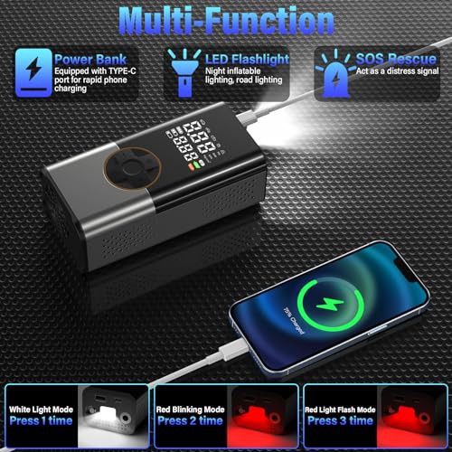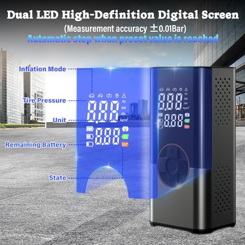 LUOCAI Tyre Inflator Portable Air Compressor,6000mAh&150PSI Cordless Tyre Inflator with LED Light,Electric Car Pump with Pressure Gauge & Auto Shutoff,Tyre Pump for Car Bicycle Motorcycle Ball