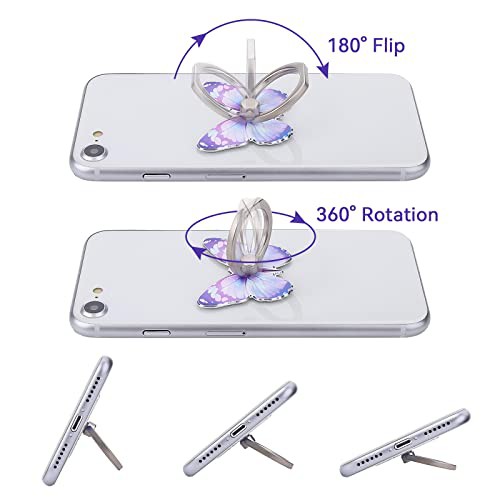 Cobee 3 Pcs Butterfly Cell Phone Ring Stand Holder, Cute Butterfly Pattern Painted Metal Finger Stand Kickstand 360°Rotation Phone Ring Holder Stand Ring Hand Grip with Knob Loop