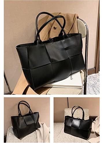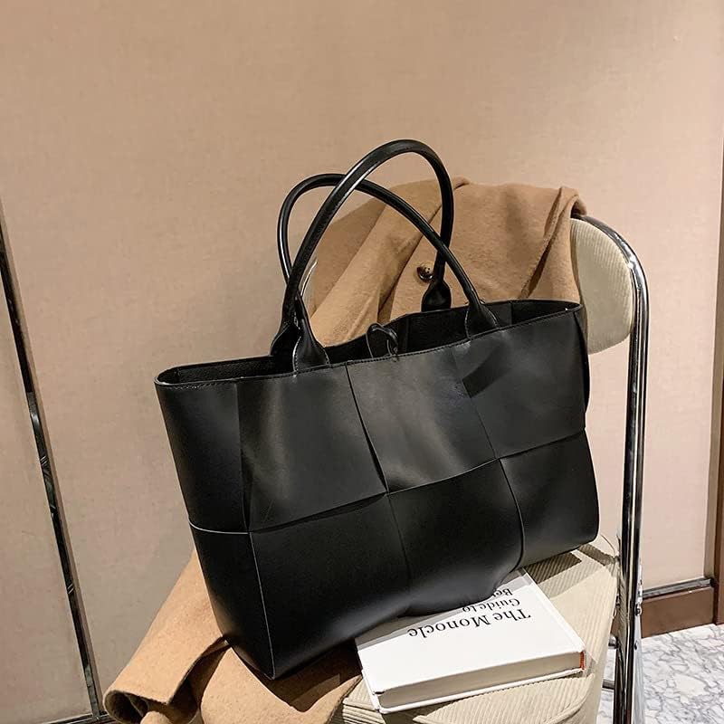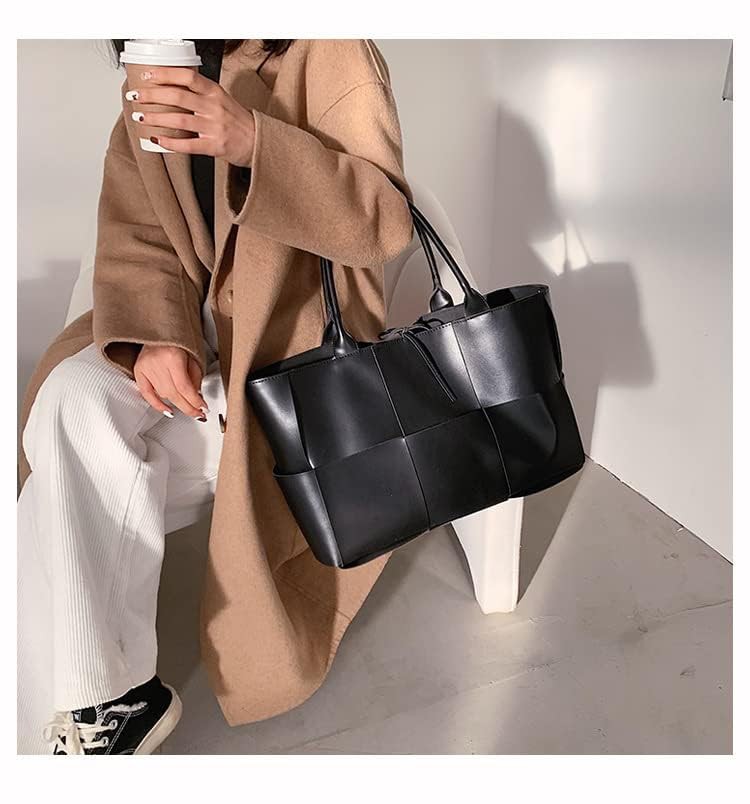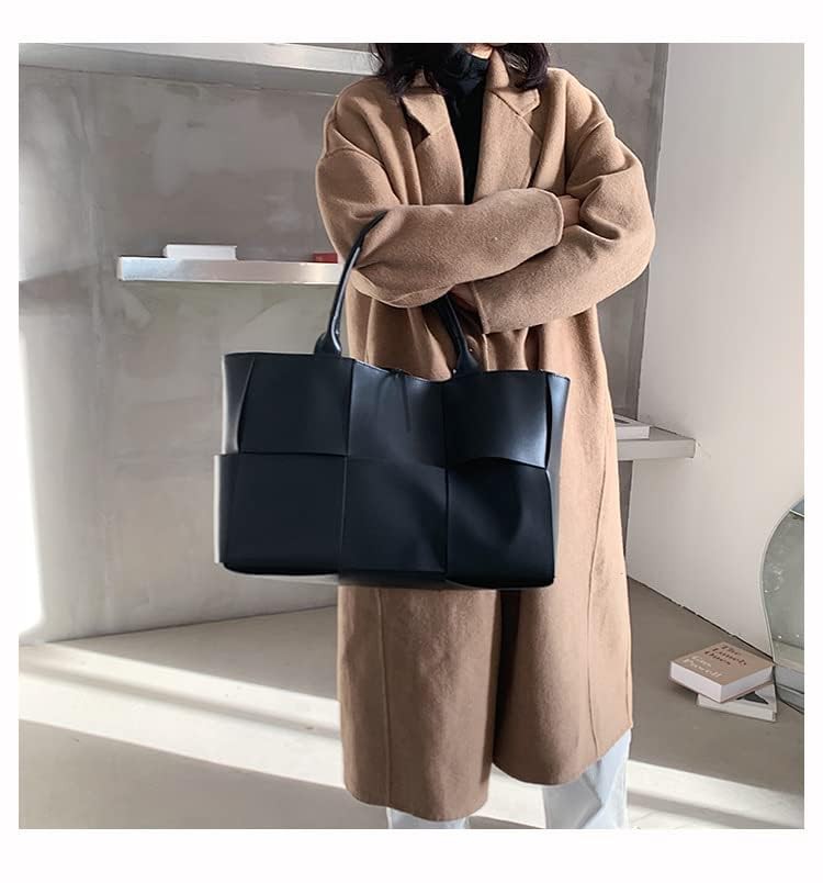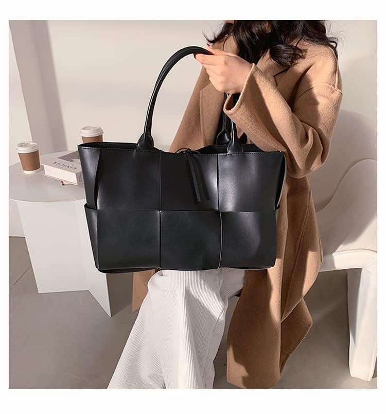YiLang Shoulder Bag Women Fashion Pu Woven Shoulder Bag Large Capacity Tote Bag-Black,39 * 14 * 26 Cm