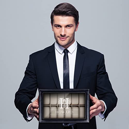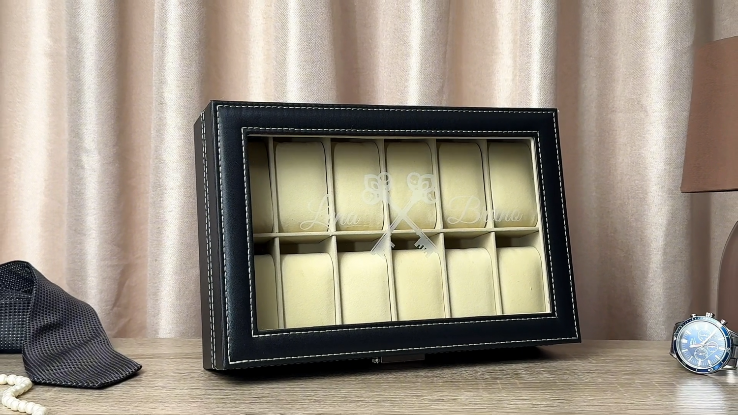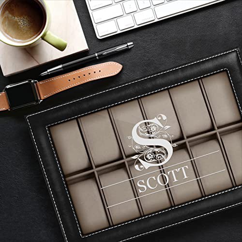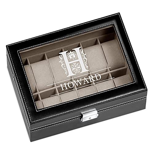 Maverton Watch organizer with a glassy display - Engraved jewellery organiser Watch box for 12 watches - Gift for men - Present for Birthday - Gift for watch lovers - LETTER