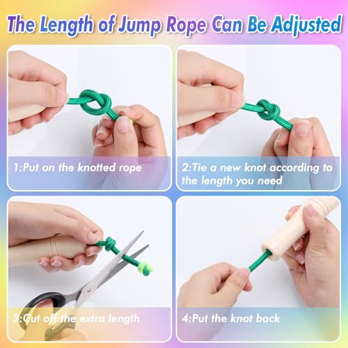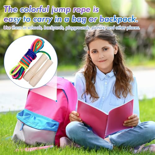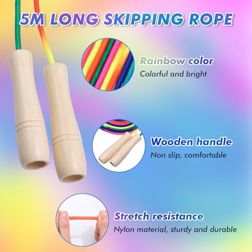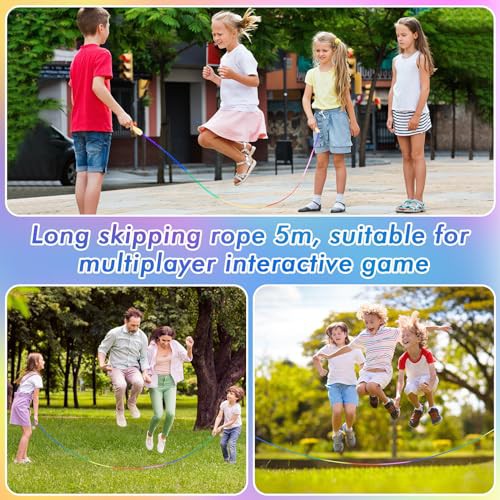 Zocipro 16 FT Long Skipping Rope Kids, Adjustable Double Dutch Jump Rope with Wooden Handle, Multiplayer Rainbow Skipping Rope for Girls Boys Outdoor Sport, Party Game, School Activities