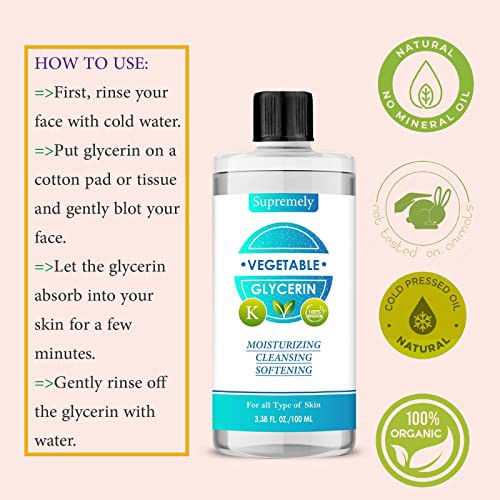 Vegetable Glycerine, Edible Food Grade EP/BP/USP Glycerine/Glycerin for Health and Beauty Hair & Skin Face, Lips DIY Soap Making, Non GMO Gluten Free By Supremely