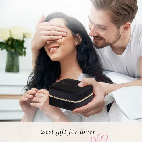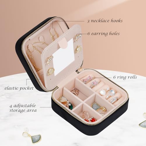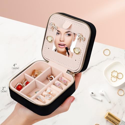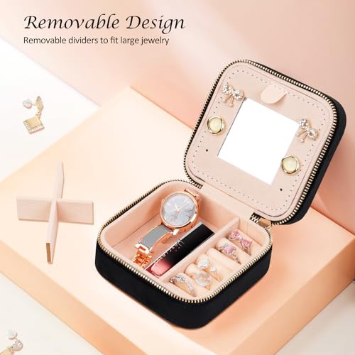 ManGotree Travel Jewelry Box, Velvet Jewelry Organizer Box with Mirror, Gift Idea for Women/Girls, Small Travel Jewelry Case for Earrings, Watches, Necklaces, Bracelets