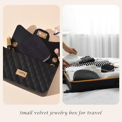 ['[High Quality Velvet Finish]: The jewelry box is wrapped in high quality velvet on the outside, which is soft to the touch, and lined with soft PU leather with suede to protect your earrings, rings, necklaces and watches from scratches.', '[High Quality Velvet Finish]: The jewelry box is wrapped in high quality velvet on the outside, which is soft to the touch, and lined with soft PU leather with suede to protect your earrings, rings, necklaces and watches from scratches.', '[High Quality Velvet Finish]: The jewelry box is wrapped in high quality velvet on the outside, which is soft to the touch, and lined with soft PU leather with suede to protect your earrings, rings, necklaces and watches from scratches.', '[High Quality Velvet Finish]: The jewelry box is wrapped in high quality velvet on the outside, which is soft to the touch, and lined with soft PU leather with suede to protect your earrings, rings, necklaces and watches from scratches.', '[High Quality Velvet Finish]: The jewelry box is wrapped in high quality velvet on the outside, which is soft to the touch, and lined with soft PU leather with suede to protect your earrings, rings, necklaces and watches from scratches.']