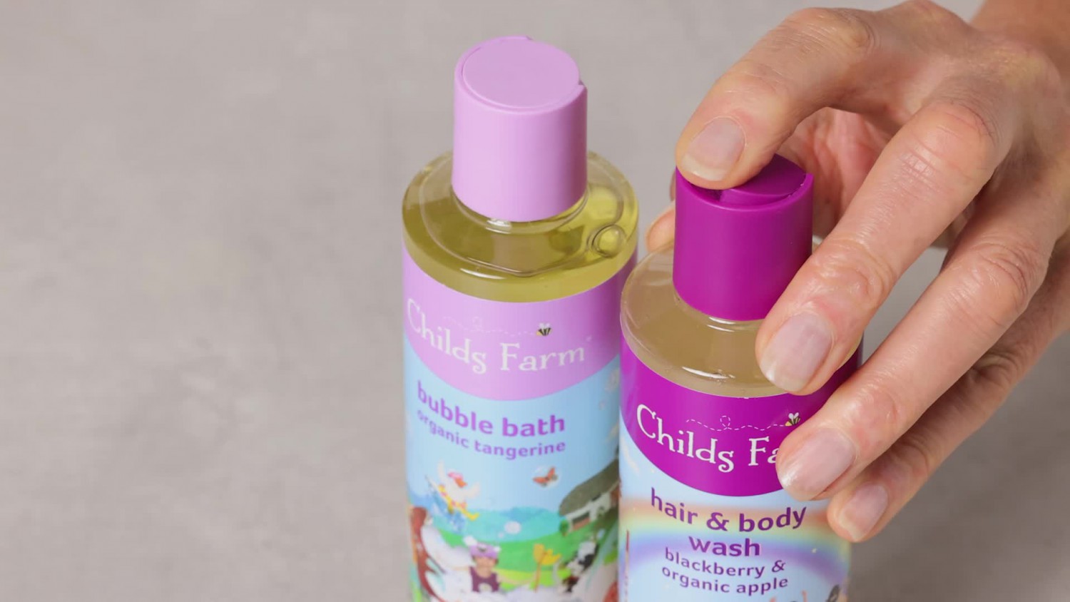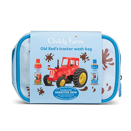 Childs Farm | Kids Tractor Luxury Wash Bag Gift | Organic Raspberry Bubble Bath 250ml & Sweet Orange Hair & Body Wash 250ml | Suitable for Dry, Sensitive & Eczema-prone Skin
