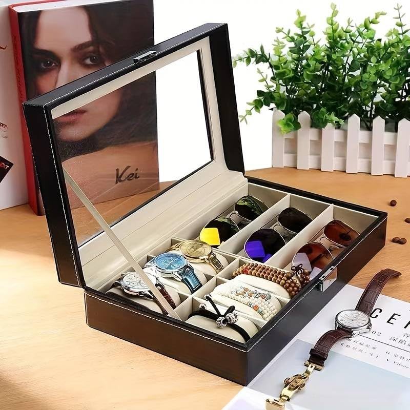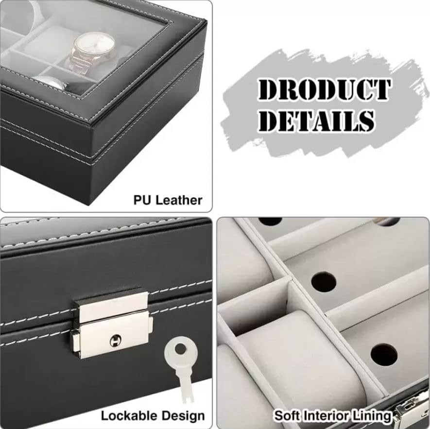 ['STAINLESS STEEL LOCK: The storage case features an anti-rust lock, a sturdy closure, and a high quality that is difficult to break. It has a black rich colour. The watch case features a sturdy lock that keeps your watches safe & keeps them from falling out and shattering if the box falls.', 'STAINLESS STEEL LOCK: The storage case features an anti-rust lock, a sturdy closure, and a high quality that is difficult to break. It has a black rich colour. The watch case features a sturdy lock that keeps your watches safe & keeps them from falling out and shattering if the box falls.', 'STAINLESS STEEL LOCK: The storage case features an anti-rust lock, a sturdy closure, and a high quality that is difficult to break. It has a black rich colour. The watch case features a sturdy lock that keeps your watches safe & keeps them from falling out and shattering if the box falls.', 'STAINLESS STEEL LOCK: The storage case features an anti-rust lock, a sturdy closure, and a high quality that is difficult to break. It has a black rich colour. The watch case features a sturdy lock that keeps your watches safe & keeps them from falling out and shattering if the box falls.', 'STAINLESS STEEL LOCK: The storage case features an anti-rust lock, a sturdy closure, and a high quality that is difficult to break. It has a black rich colour. The watch case features a sturdy lock that keeps your watches safe & keeps them from falling out and shattering if the box falls.']
