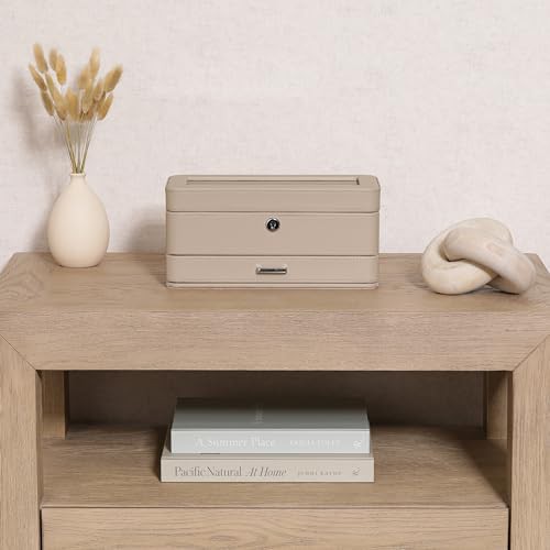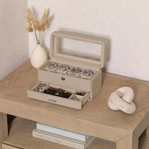 ROTHWELL 4 Slot Leather Watch Box with Valet Drawer - Luxury Watch Case Display Jewelry Organizer, Locking Watch Display Case Holder with Real Glass Top - Watch Box Organizer for Men & Women