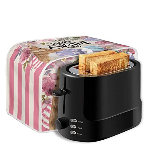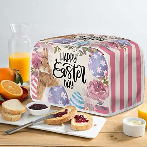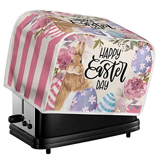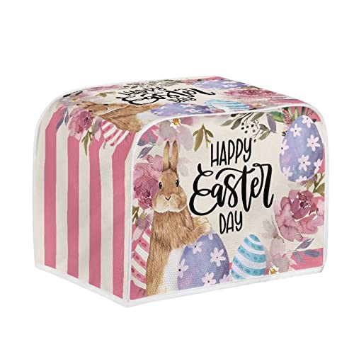 STUOARTE Rabbit Flowers Toaster Cover Cute, Easter Decorative 4 Slice Toaster Cover Bread Machine Accessories Small Appliance Dust & Fingerprint Protector Universal Size