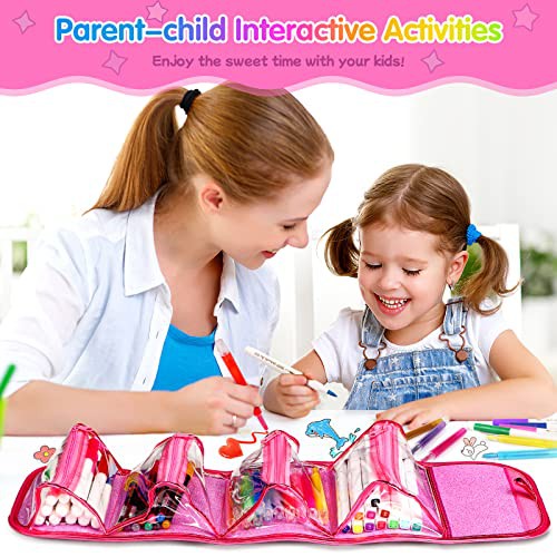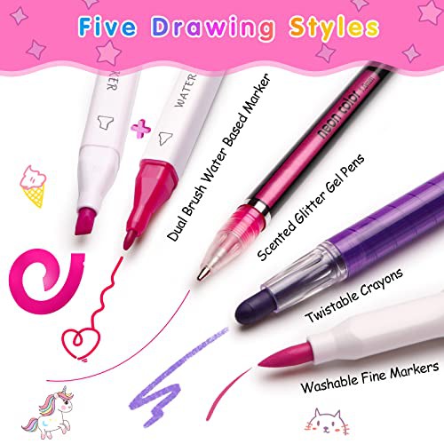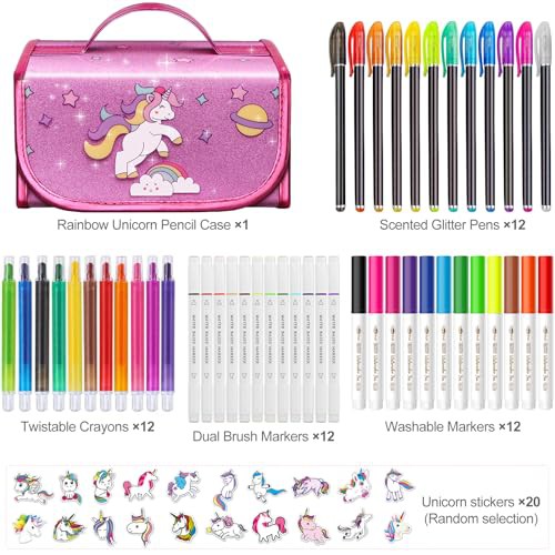 Hot Bee Christmas Unicorn Gifts for 3-7 Year Old Girls, Arts and Crafts for Kids, Fruit Scented Washable Markers Stationery Set, Travel Art Drawing Colouring Set for Girls