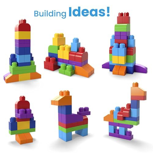 MEGA BLOKS Big Building Bag building set with 60 big and colorful building blocks, and 1 storage bag, toy gift set for ages 1 and up, DCH55