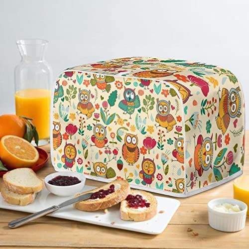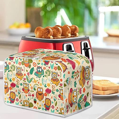STUOARTE Flowers Owl 4 Slice Toaster Cover,Cute Bread Maker Cover,Kitchen Small Appliance Covers,Universal Microwave Toaster Oven Cover,Dustproof Cover for Most Standard 4 Slice Toasters