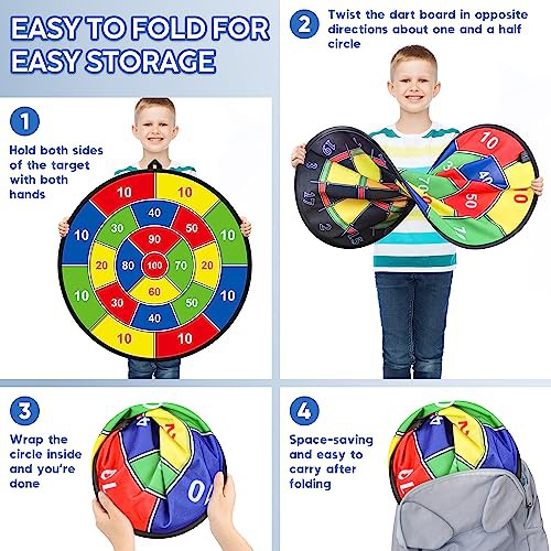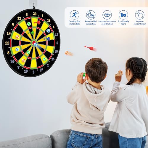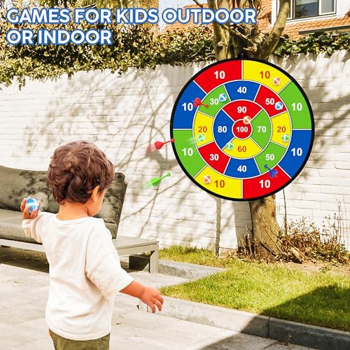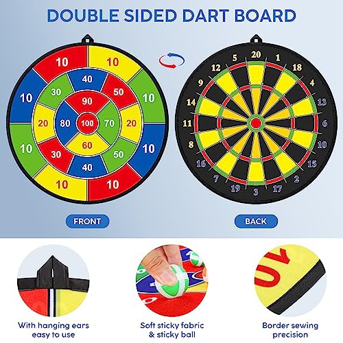 29 Inches Kids Dart Board Set,Double Sided Dart Board with 12 Sticky Balls,6 Darts,Indoor & Outdoor Party Games Toys Gifts for 3 4 5 6 7 8 9 10 11 12+ Year Old Boys Girls and Adult