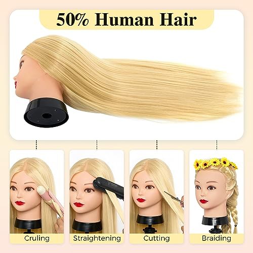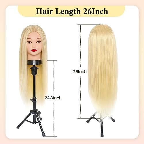 Hairdressing Head with Tripod Neverland Beauty 26 Inch 50% Real Human Hair Training Head Hairdressing Practice Mannequin Manikin