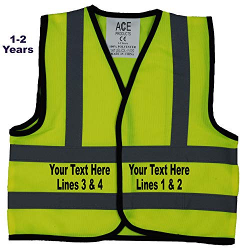 Acce Products Personalised Digger Driver Baby, Toddler, Children, Kids Hi Vis Safety Jacket Vest Size 1-2 Years Yellow Optional Personalised On Front