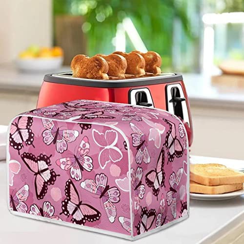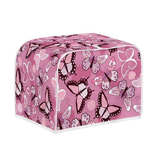 STUOARTE Butterfly Print Toaster Cover 4 Slice Bread Toaster Cover Bakeware Protector Bread Machine Dustproof Protection Cover Kitchen Appliance Cover Washable, Pink