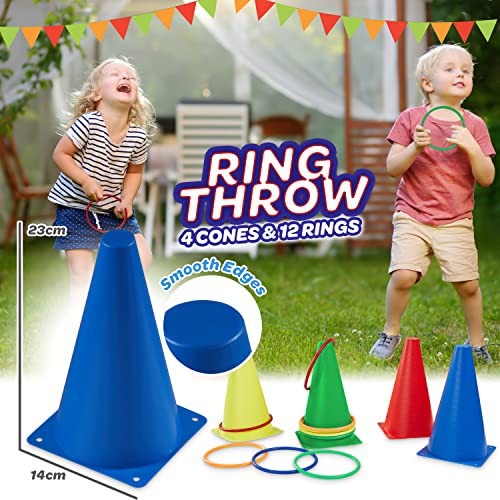Outdoor Games Play Equipment for Kids Family Garden Toys Sports Day Kit Egg and Spoon Race Ring Toss Sack Race Bean Bags Snakes and Ladders