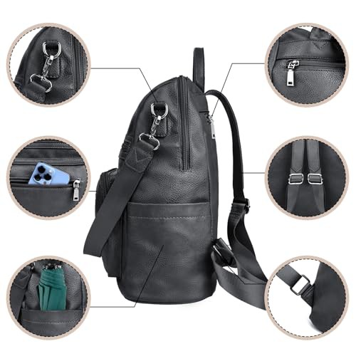 ECOTISH Women PU Leather Backpack Waterproof Casual laptop bag School Shoulder Bag for Ladies