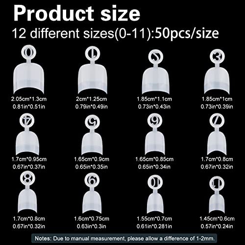 MWOOT 600Pcs Oval Short False Nail Art Tips Set, Half Cover French Acrylic Fake Nail Tips, Finger Stickers Nail Extension Tips Tool for DIY Salon Home Manicure Nail Decoration, 12 Sizes