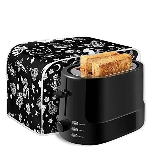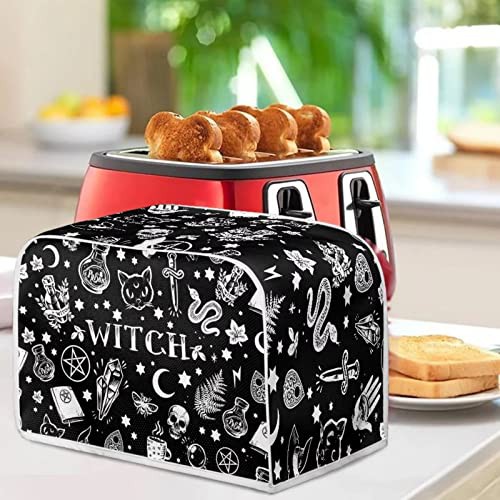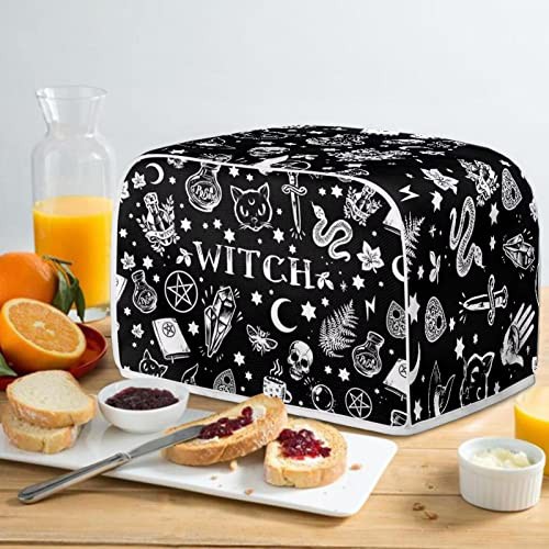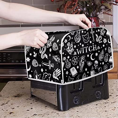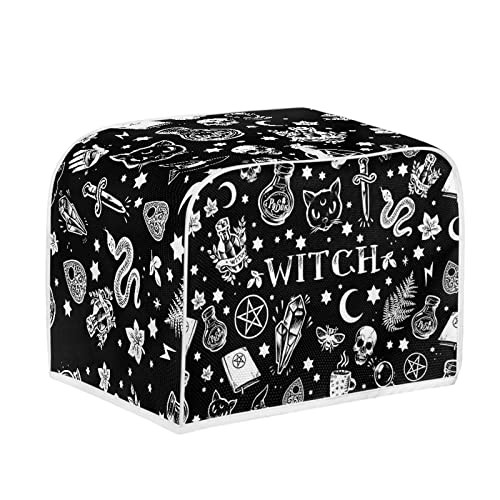 STUOARTE Skull Witch Print Toaster Dust Cover 4 Slice Bread Toaster Cover Small Appliance Dustproof Cover Bag Bread Maker Machine Protective Cover Washable Universal Size, Black