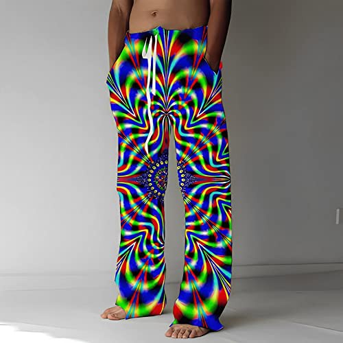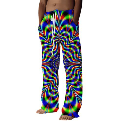 Men's Fashionable Colourful Casual Trousers Straight Leg Casual Printed Linen Trousers with Pocket Lace-up Trousers Outdoor Comfortable Jogging Bottoms Straight Leg Relaxation Trousers Breathable Long