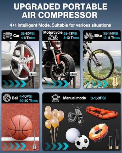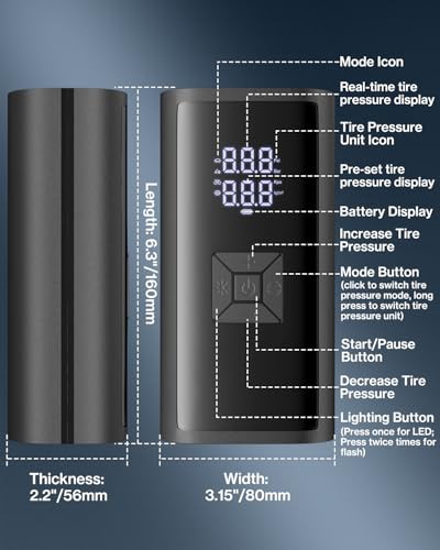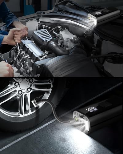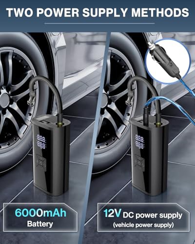 Lytool Cordless Tyre Inflator Air Compressor, DC 12V Car Tire Pump, 150PSI 6000mAh Fast Inflate Air Compressor, with digital LED Display and Emergency Lighting for Cars Tires, Bikes, Motorcycle, Balls