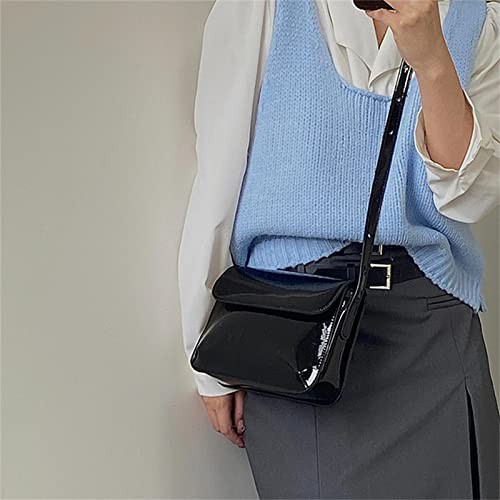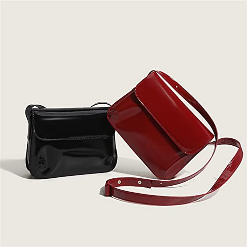 Iordan Handbag Retro Patent Shoulder Bag For Women Flap Small Square Bag Fashion Underarm Crossbody Bag Ladies Handbag Purse-Black