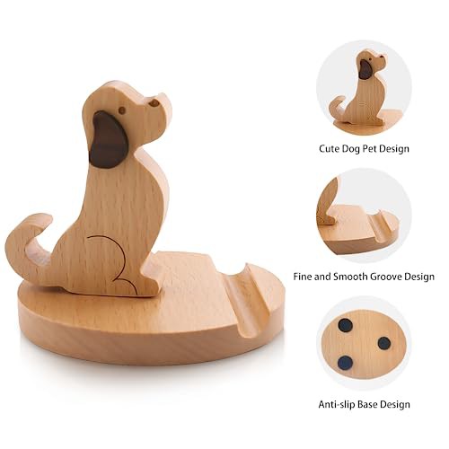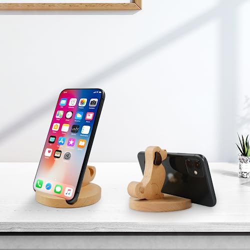 IHONYI Wooden Cell Phone Stand Dog Phone Holder Animal Phone Stand, Novelty Desk Phone stand, Mobile Phone Holder Desk Decoration, for Universal Cell Phone Compatible with Mini Pad Phone X XS XR 11
