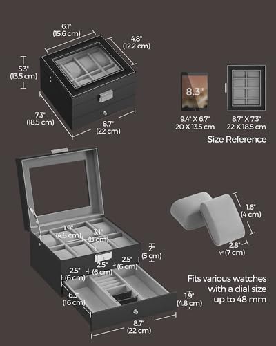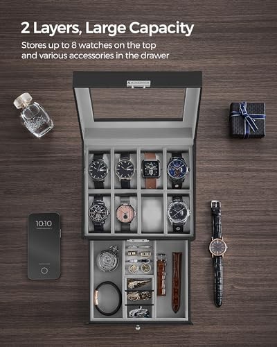 ['[2 Layers, Large Capacity] The top layer with 8 slots offers a cosy home for your watches with a dial size up to 48 mm, and a bottom drawer with various areas offers extra space for your necklaces, rings, earrings, and more', '[2 Layers, Large Capacity] The top layer with 8 slots offers a cosy home for your watches with a dial size up to 48 mm, and a bottom drawer with various areas offers extra space for your necklaces, rings, earrings, and more', '[2 Layers, Large Capacity] The top layer with 8 slots offers a cosy home for your watches with a dial size up to 48 mm, and a bottom drawer with various areas offers extra space for your necklaces, rings, earrings, and more', '[2 Layers, Large Capacity] The top layer with 8 slots offers a cosy home for your watches with a dial size up to 48 mm, and a bottom drawer with various areas offers extra space for your necklaces, rings, earrings, and more', '[2 Layers, Large Capacity] The top layer with 8 slots offers a cosy home for your watches with a dial size up to 48 mm, and a bottom drawer with various areas offers extra space for your necklaces, rings, earrings, and more']
