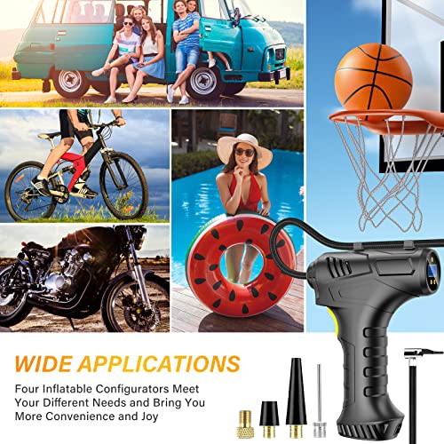 Petrinda Cordless Tyre Inflator Air Compressor, 12V USB Rechargeable Battery 150PSI Portable Car Tyre Pump, Electric Digital Tyre Pump with LED Light and 3 Nozzle Adaptors for Car Motorcycle Bicycle
